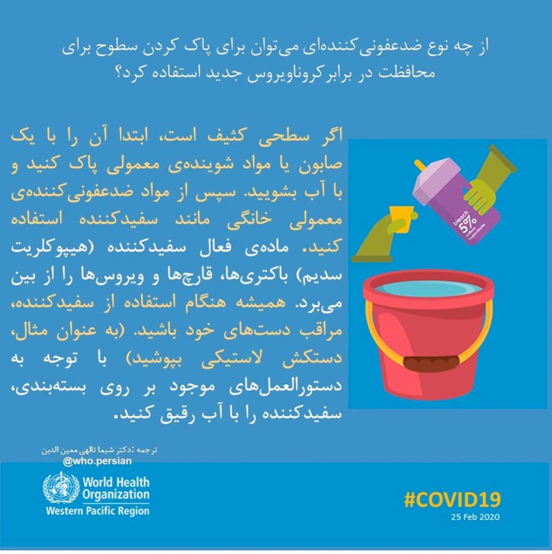 v ازچه نوع ضدعفونی کننده ای می توان برای پاک کردن سطوح برای محافظت در برابر کرونا ویروس جدید استفاده کرد؟