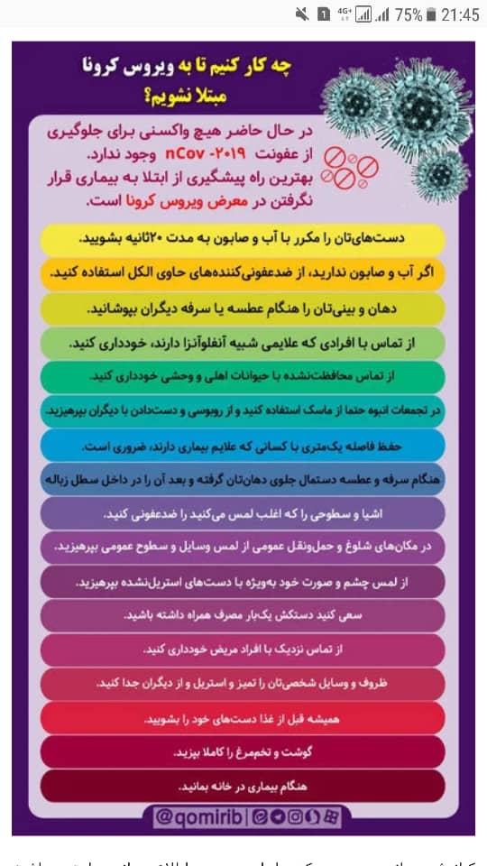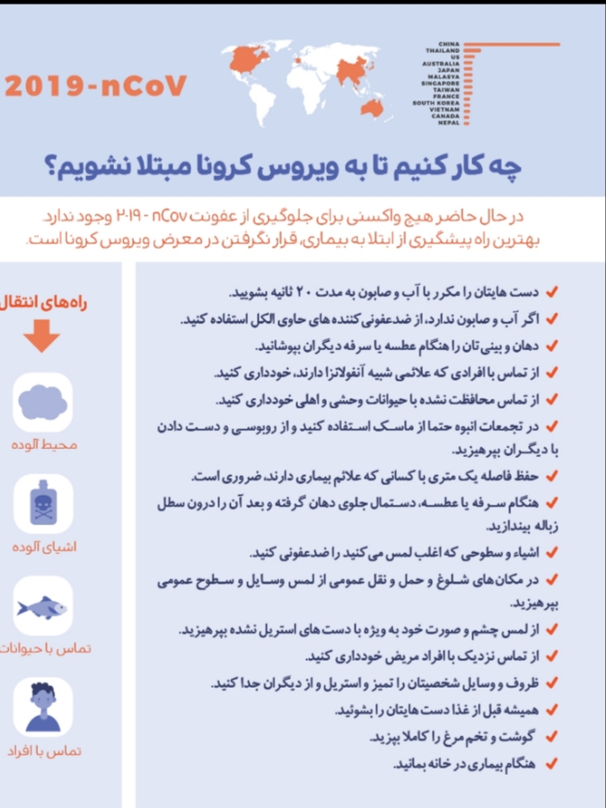 v توصیه های بهداشتی در مقابله با کرونا ویروس جدید